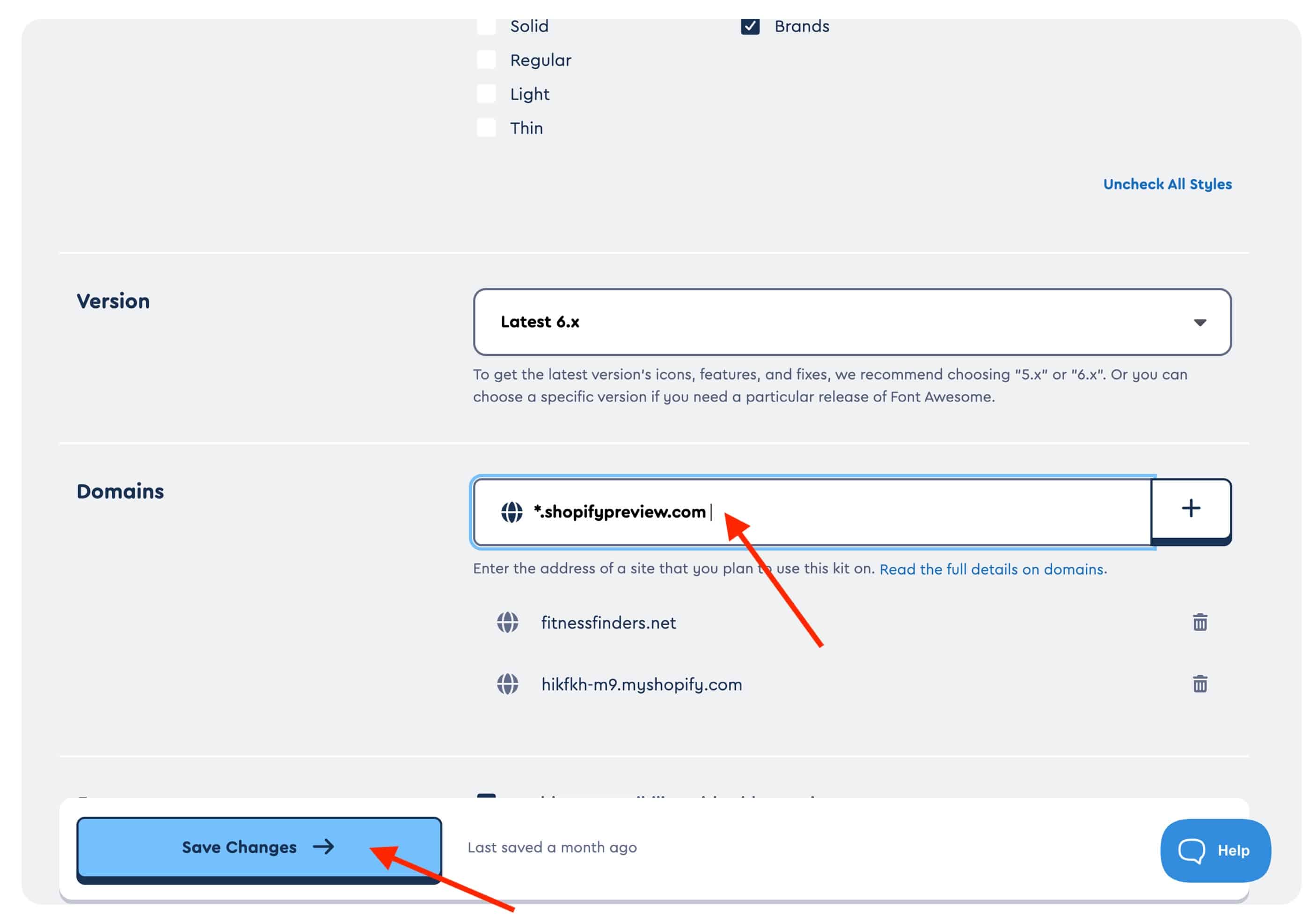 Fix: log into fontawesome.com → Kits → your kit → Settings → add *.shopifypreview.com and *.myshopify.com to the allowed domains. Save. Refresh preview. Icons appear.